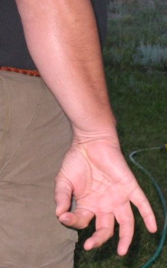 1.1. Let your arms fall to your sides in a neutral position. Stretch your fingers apart as far as you can. Hyperextend them. Hold it for 10 seconds. 1 Mississippi, 2 Mississippi...10 Mississippi. Oooh, that feels good. |